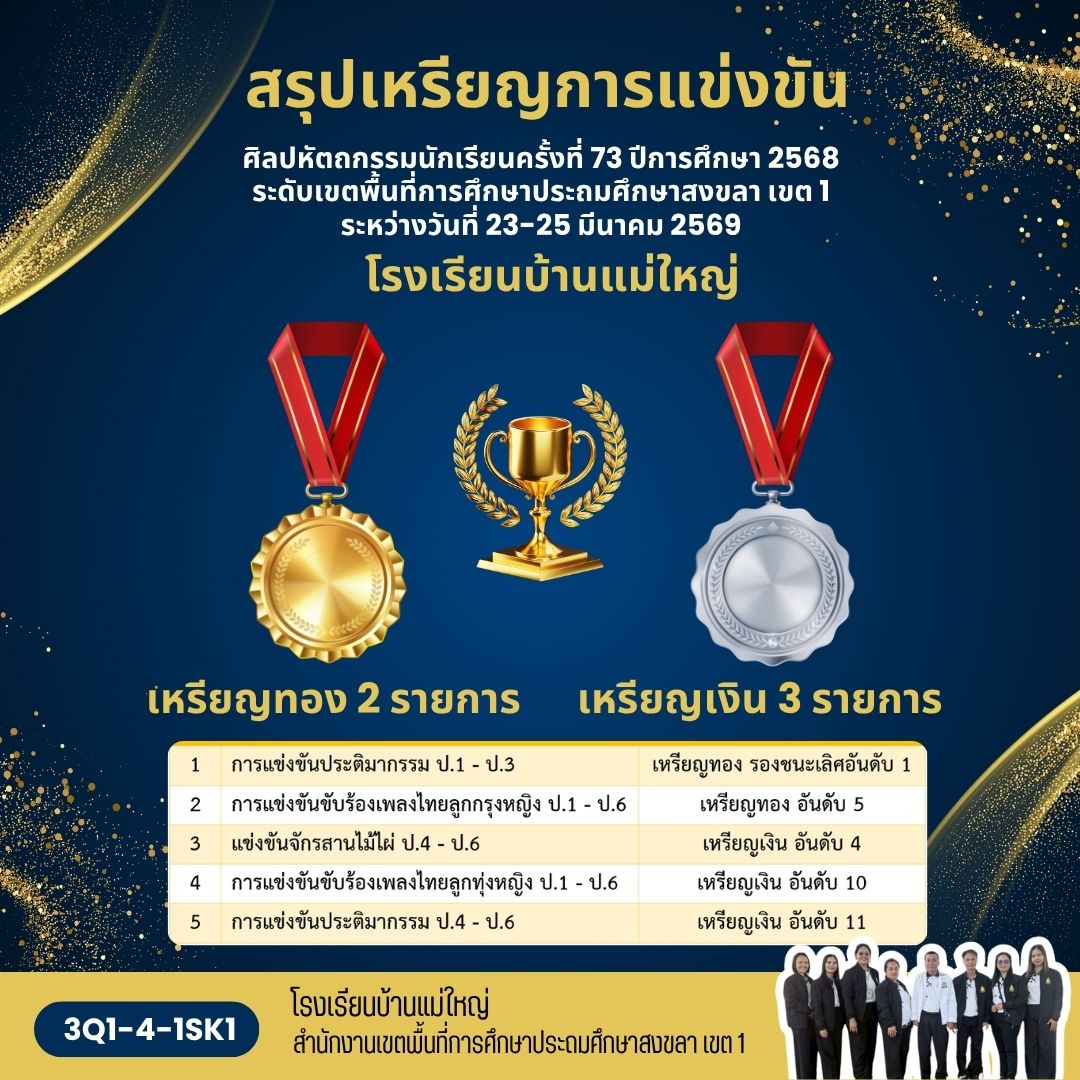 สรปผลการแข่งขันศิลปหัตถกรรมนักเรียน ครั้งที่ 73 ปีการศึกษา 2568 ระดับเขตพื้นที่การศึกษาประถมศึกษาสงขลา เขต 1